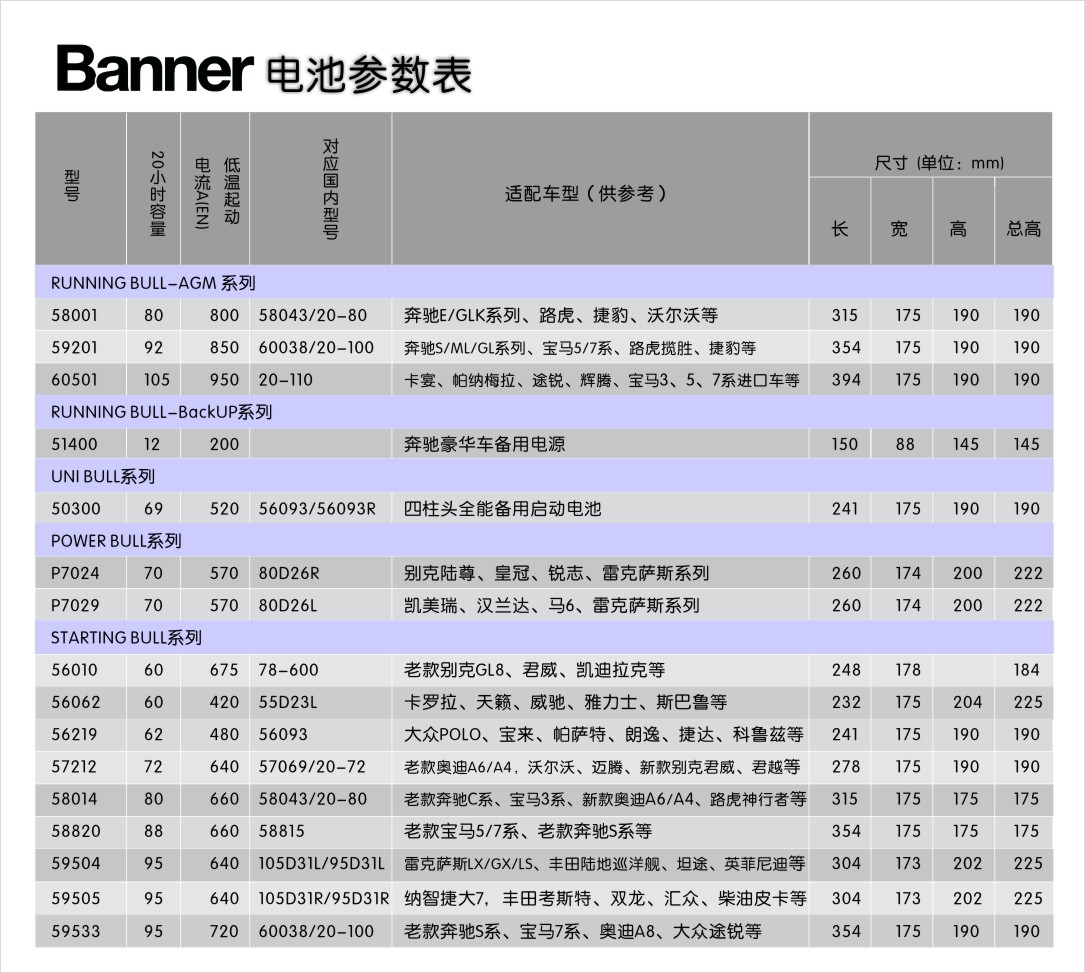 启动电池-56062 型号:56062 20小时容量:60A 低温起动电流:420A(EN) 对应国内型号:55D23L 参考适配车型:卡罗拉、天籁、威驰、雅力士、斯巴鲁等 尺寸:长232mm*宽175mm*高204mm(总高225mm) 产品介绍